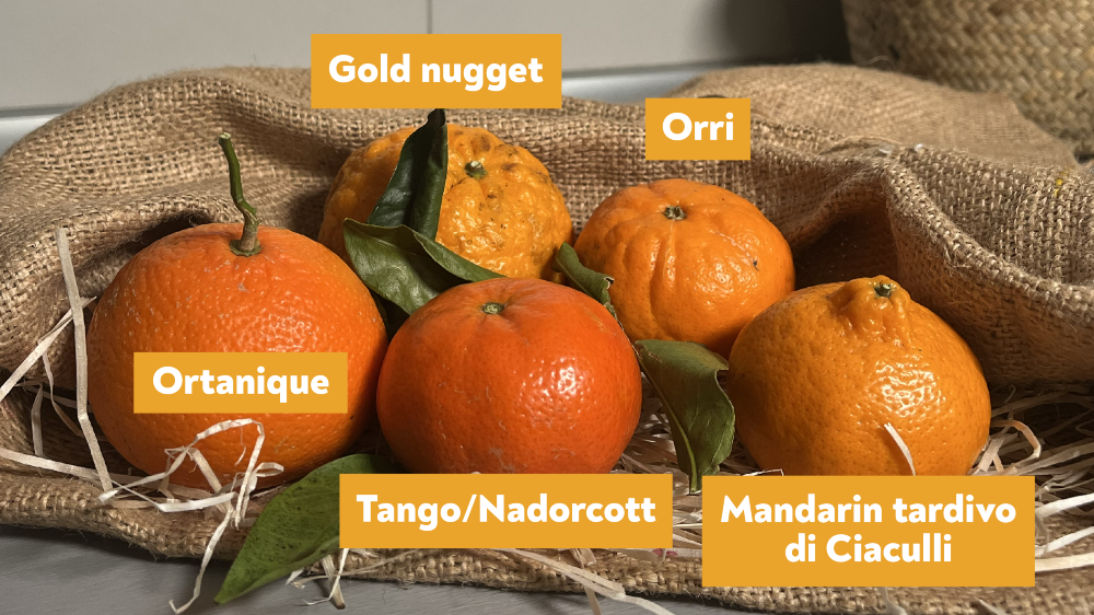 Orogros: Di dimensioni medio-grandi, con una buccia che varia dal giallo all’arancione. Il suo sapore è un equilibrio tra dolcezza e acidità. La buccia è un po’ più spessa rispetto a quella di un mandarino comune, ma resta facile da sbucciare. La stagione di raccolta dell’Orogros è solitamente compresa tra gennaio e marzo.
